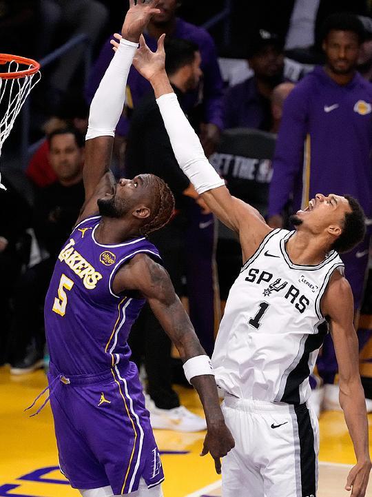 在對(duì)陣太陽的比賽中,文班亞馬14投籃4中,全場(chǎng)僅得到9分9籃板,而在對(duì)陣湖人的比賽中,文班亞馬14投5中,靠罰球11投9中,得到19分8籃板,但因6次犯規(guī)被罰離場(chǎng)。